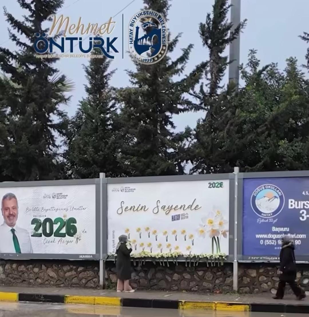 Şehrin farklı noktalarındaki billboardlara yerleştirilen ve “Birlikte Büyüttüğümüz Umutlar 2026’da Çiçek Açıyor” mesajını taşıyan görsellerin üzerine, Hataylı vatandaşlar için yılbaşı hediyesi olarak demet demet nergis çiçekleri bırakıldı.