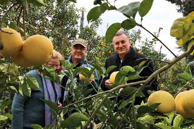 Hatay Büyükşehir Belediye Başkanı Lütfü Savaş, Çarşamba günü Erzin’deydi. Erzin Belediye Başkanı Ökkeş Elmasoğlu’nu ziyaret eden, daha sonra Elmasoğlu ile beraber narenciye bahçelerine yönelik ziyaretlerde bulunan Başkan Savaş, Başar Kömür Narenciye Çiftliği’ni gezdi, yerli ürünler hakkında bilgi aldı. Son yağışlarla iyice çamurlaşan tarlada, narenciye ürünleriyle ilgili bilgi alan Başkan Savaş, daha fazla ürünün daha fazla katma değere ulaşması ve üreticinin de emeğinin karşılığını alması gerektiğini bildirdi. -Cemil Yıldız-