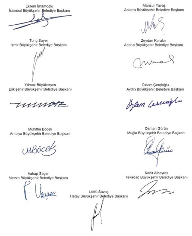 Toplantıda, Kovid-19 salgını, iklim değişikliğinden kaynaklı kuraklık ve Yerel Yönetimler Reformu kaynaklı sorunlar masaya yatırıldı. Yaklaşık 2 saat süren toplantının ardından, 11 Büyükşehir Belediye Başkanının imzasıyla ortak bir açıklama yayımlandı.