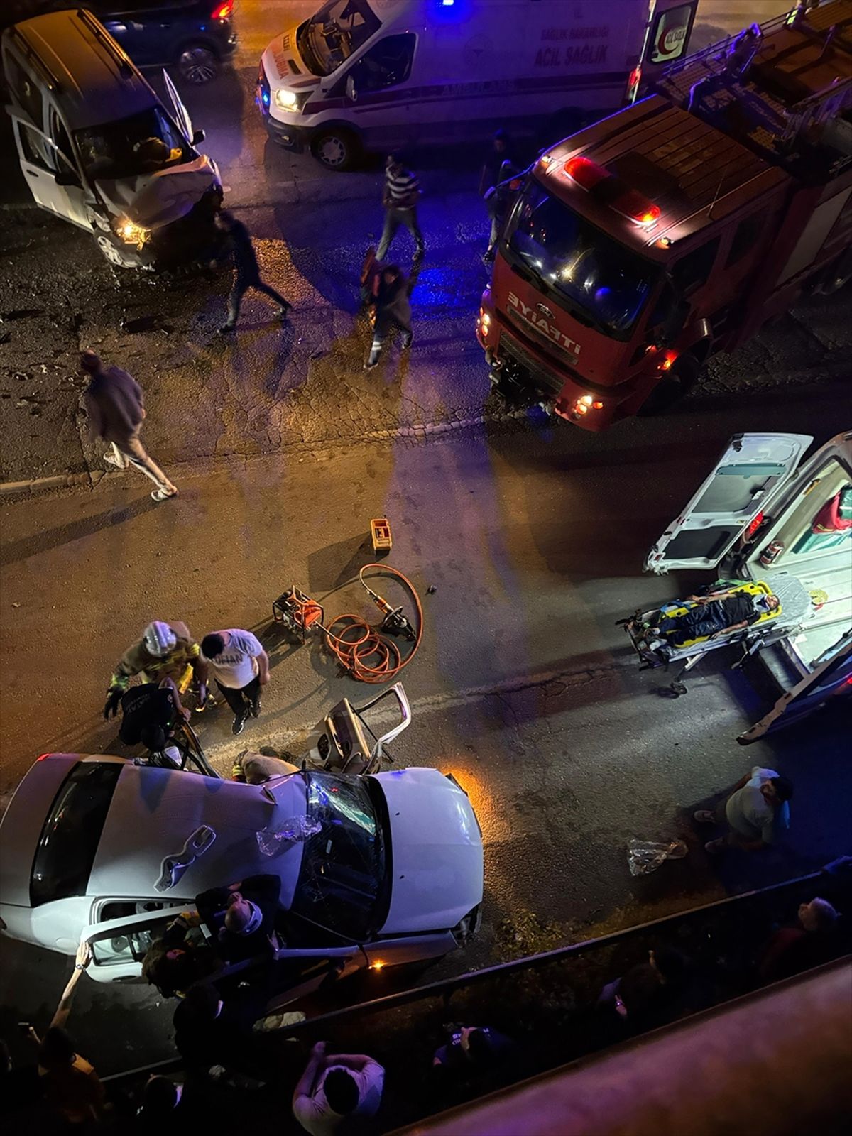 İhbar üzerine olay yerine itfaiye ve sağlık ekipleri sevk edildi. Araçlarda sıkışan yaralılar, itfaiye ekiplerinin yoğun çalışması sonucu bulundukları yerden çıkarıldı.
