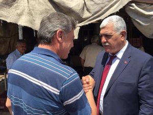İsmet Tokdemir. Pazartesi günü Reyhanlı’daydı. Gittiği semt pazarı ve çarşı esnaf gezisinde karşılaştığı herkesin elini sıktı, hal-hatır sordu, 25-30 saniye de olsa, eller sıkıca tutuşmuş şekilde sohbet etmeye çalıştı. Tokdemir, ziyaretleri ardından şu mesajı yayınladı: