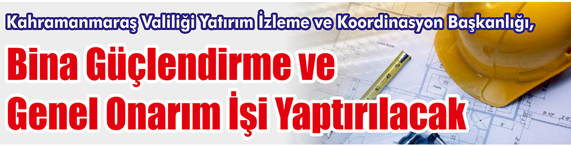 Kahramanmaraş Valiliği Yatırım İzleme ve Koordinasyon Başkanlığı, Bina güçlendirme ve genel onarım işi yaptıracak.