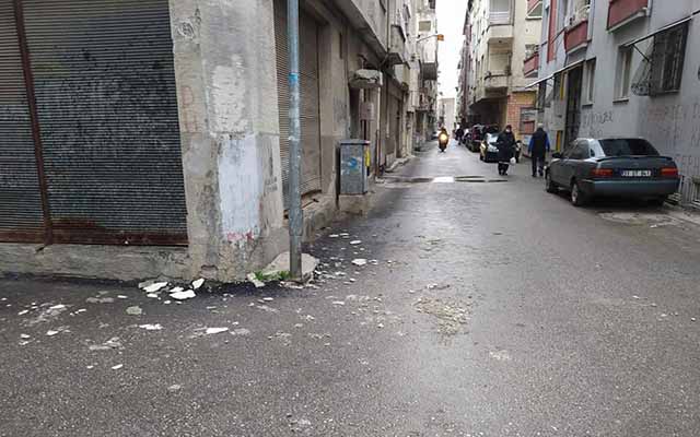 Armutlu Mahallesi’nde eski binalardan beton parçaları yere düşüyor, tehlike var!