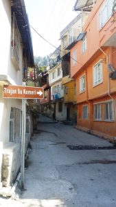 Dar yola girmek için bekleyen adımlarınızın ısrarında merak edip sorduğunuz ilk soru, kadim bir kentin, sahip olduğu hikayeleri neden sadece Türkçe fısıldadığı! Sahi ‘niye’? Sıradan bir ‘mahalle isimliği’ gibi sizi karşılayan ‘Trajan Su Kemeri’ isimliği için bir de İngilizce kullanmak akla mı gelmedi? Yoksa ‘gereksiz’ mi geldi? Hangisi?