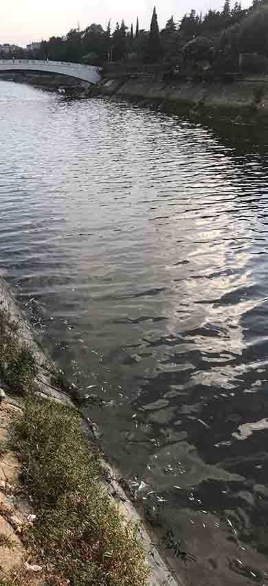 Pazartesi günü, Asi Nehri’nin akşam saatlerindeki halini izleyenler, kent merkezinden geçen nehir sularının yüzeyinde cansız bedenleri ile birikmiş on binlerce balığı, Asi Nehri’nde yaşanan çaresizliği izledi.