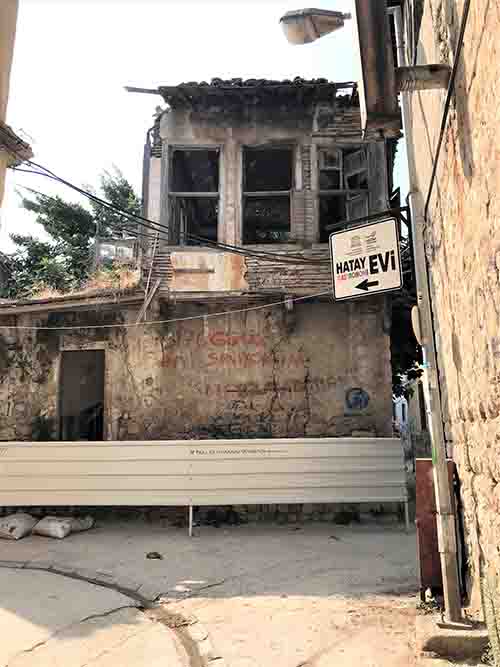 Tam da bu noktada, 19 Mart 2019’da açılan Hatay Gastronomi Evi ile başlayalım. Açıldığı günden bugüne oldukça mesafe kat eden Gastronomi Evi, 600 çeşit yemeğin Hatay coğrafyasında durma avantajı ile ilerliyor. Bünyesinde sık sık gerçekleştirdiği etkinliklerle de adını gündemde tutmaya çalışıyor. Ancak Gastronomi Evi’ne giden yolun üzerindeki eski yapıların bakımsızlığı eleştiri konusu oluyor. Bugün fotoğrafladığımız bir yön tabelası buna dair. Tabela, Hatay Gastronomi Evi’ne gidecek yönü işaretlerken, arka plandaki yarı yıkılmış eski bir Antakya evi, kent hikâyesinin yok olan hikâyeleri adına kötü bir örnek sunuyor.