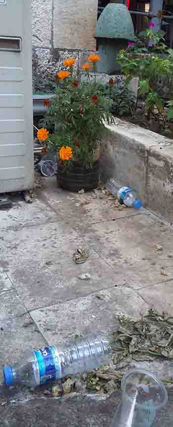 Temizliğine ve bakımına gösterilen özen ne kadar istenen noktada olursa olsun, “kontrol şart” dedirten son görüntü, eleştirilerin odağında. Cami’nin dış duvarındaki pencerelerden fark edilen mezar alanı içinde bulunan boş pet şişeler ve plastik bardak gibi çöplerin yarattığı görsel, istenmeyene işaret ederken, “Mezar alanlarına dahi saygımız kalmadı. Burayı sürekli temiz tutmaya çalışan kurumsal emek bir tarafa, bunu buraya fırlatanları bulup, afişe etmek lazım, çözüm için… Yoksa ne bu kent değişecek, ne de bizler!” dedirtti. -Tamer Yazar-