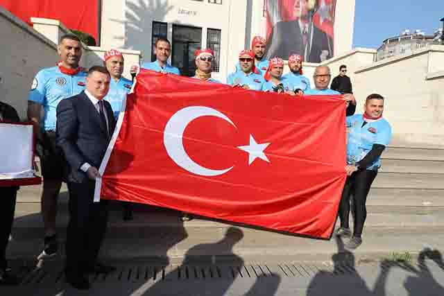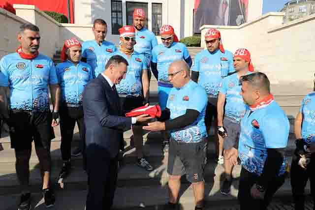 Antakya’dan yola çıktı. Bisikletçiler, Atatürk Anıtı önünden hareket etti. Bisikletçileri, Hatay Büyükşehir Belediye Başkanı Lütfü Savaş uğurladı ve hareket öncesi, kendilerine Türk Bayrağı teslim edip, 10 Kasım günü bu bayrağı Ulu Önder’in kabrine bırakmalarını istedi.