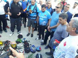 22 Ekim Pazar günü saat 09:00’da Abdullah Cömert Alanı’ndan start alan bisiklet grubu, merhum Levent Baytar’ın kaza yaptığı yere çiçek bırakarak Levent Baytar’ı andılar. -Cemil Yıldız-
