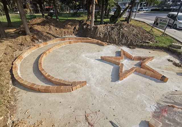 Antakya Belediyesi yetkilileri, Atatürk Parkı içerisindeki Ay Yıldızlı Bayrak çiziminin, bittiğinde çok güzel olacağı ümidinde. -Cemil Yıldız-