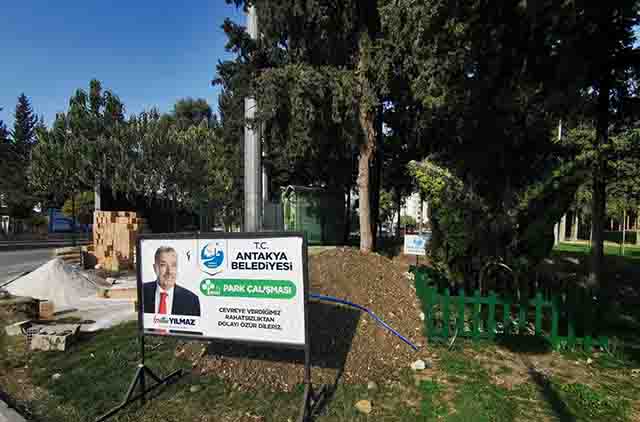 Antakya Belediyesi, İnönü Caddesi ile Mehmet Yeloğlu Köprüsü kenarındaki Atatürk Parkı’ndaki düzenlemelerle dikkati çekiyor. Antakya Belediyesi, yıllardır atıl durumdaki Atatürk Parkı’ndaki düzenlemelerle peyzaj çalışmaları ile parka hayatiyet kazandırmaya çalışıyor.