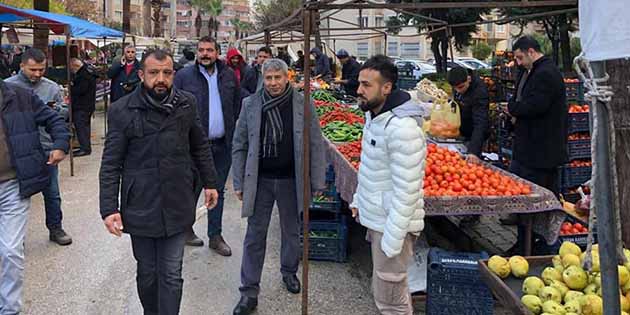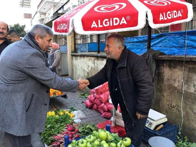 CHP Antakya Belediye Başkan Adayı Hikmet Hatunoğlu, 31 Mart seçim çalışmaları kapsamında, semt pazarı esnafını ziyaret etti, Esenlik Mahalle halkı ile bir araya geldi.