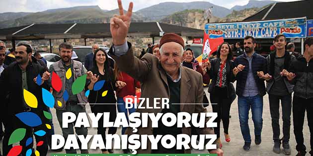 “Bizler, iktidarın, korona salgınıyla bir kez daha kaderine terk ettiği insanlarımızla aramızda dayanışma ve paylaşma ağları örüyoruz. Bizler, yalnızlığa terk edilen her aileyi, her sokağı, her mahalleyi dayanışma ağlarıyla birleştiriyoruz. Kimse bu salgında yalnız kalmasın diye aşımızı, ekmeğimizi ve imkanımızı paylaşıyoruz. Paylaşarak dayanışmak isteyen herkesi de birer aileyle buluşturuyoruz.