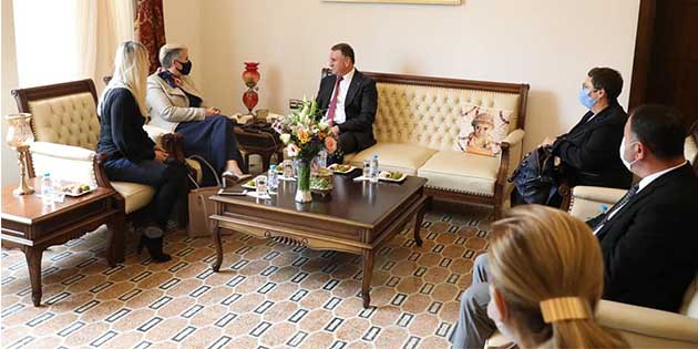 İrlanda Büyükelçisi Sonya McGuinness ve beraberindeki heyeti konuk eden Başkan Savaş, ilimizde 9 yıldır süregelen göçmen sorunu ve sınırdaki insanlık dramı konusunda konuğuna bilgi aktarırken, Büyükelçi McGuiness’e, Birleşmiş Milletler dahil, bölge ile ilişki kuran devletlerin mevcut soruna yüzeysel bakmaması gerektiğini ifade etti.