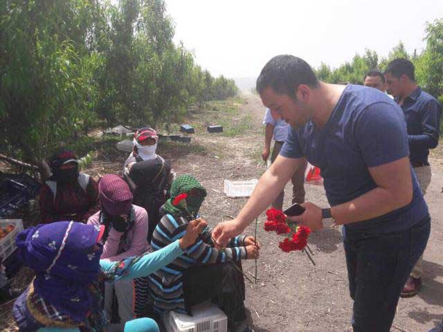 “Amik Ovası’nda şeftali tarlasında çalışan annelerimizi ziyaretle Anneler Günü’nü kutladık. ‘Bugün sizi çalıştırmıyoruz’ etkinliğimiz kapsamında emekçi annelerimizi dinlendirerek onlara el uzattık. Yerlerine gün boyu biz çalışarak Anneler Günü’nde iyi bir gün geçirmelerini istedik. Annelerimiz bizim her şeyimiz. Mutlu olduklarını görmek bizim için paha biçilemez. Onlara el uzatmak, hayata onların penceresinden bakmaya çalıştık.”