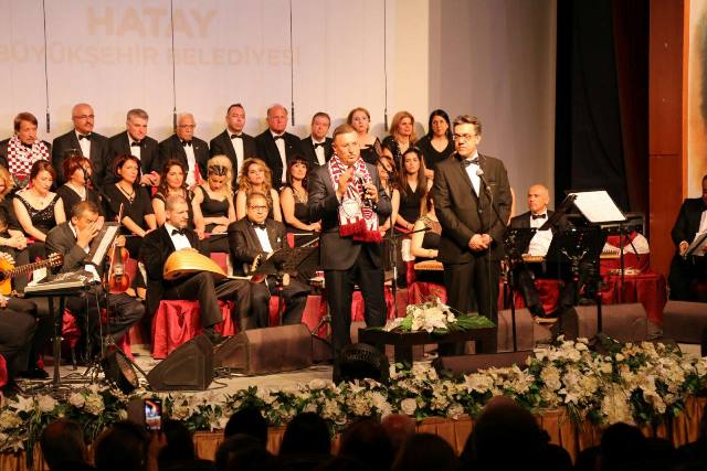Hatay Büyükşehir Belediyesi Türk Müziği Korosu “Bahar Meltemi Konseri” önceki akşam gerçekleşti. Konseri, Büyükşehir Belediye Başkanı Lütfü Savaş ile eşi Nazan Savaş da izledi. Ellerde Türk Bayrakları ile salonu dolduran müziksever davetliler, sonlara doğru birçok parçada koroya eşlik etti ve görkemli bir tablo oluştu.