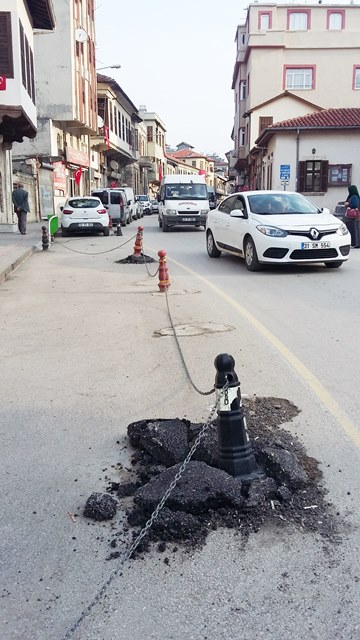 Kadim toprakların kenti Antakya’nın tarihi Kurtuluş Caddesi’nde ilerleyenleri Anadolu’nun ilk camisi ünvanlı Habib-i Neccar’a geldiklerinde karşılayan bu ‘asfalt’ katkılı plastik dubalar, başarılı restorasyonu ardından keyif veren bir ziyaret noktası haline gelen bölge adına ciddi anlamda ‘estetik’ bir çirkinlik yaratıyor. Trafiğin en yoğun olduğu bir alanda cami önünde ‘özel bir park alanı’ yaratmak için kullanılan dubaları yola sabitlemek için dökülen ‘ziftin’ şekli de yapımındaki ‘özensizlik’ de birçok vatandaşın eleştirisine neden olurken, durumun düzeltilmesi, en azından daha ‘özenli’ bir şekilde yapılması isteniyor.