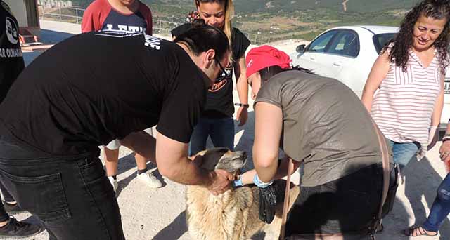 Köpeklerin de yaşam haklarının olduğunu belirten Anadolu Hayvan Hakları Federasyonu Başkanı ve Hayvan Yaşam Hakları Konfederasyonu Genel Sekreteri, Sarı Zeybek Derneği Genel Başkanı Nevzat Kurt, Hatay Doğa ve Yaşam Derneği Başkanı Sinem Karaahmetli, Gaziantep Cehide Derneği Yönetim Kurulu Üyesi, Cemal Güneş ve dernek üyeleri, çöplükte terk edilen hayvanlara yiyecek verdiler. Terk edilen köpeklerin tedavisi için gelen veteriner hekim Ayhan Kaya ve İsmail Alaca, tek tek köpeklere iğne yaparken, yaralı olanlara da ilaç tedavisi uyguladılar, arabanın çarptığı ve ağır yaralı olan bir köpeği arabalarına alarak, kliniklerine götürdüler.
