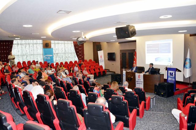 Yapılan konuşmaların ardından, Hatay Vergi Dairesi Başkanı Nazmi Erol ve SGK Hatay İl Müdürü Hamit Bal, katılımcılara sine vizyon destekli olarak, ‘7020 sayılı bazı alacakların yeniden yapılandırılması hakkındaki kanun’ ile ilgili sine-vizyon destekli olarak detaylı bilgiler verdiler. -Tamer Yazar-