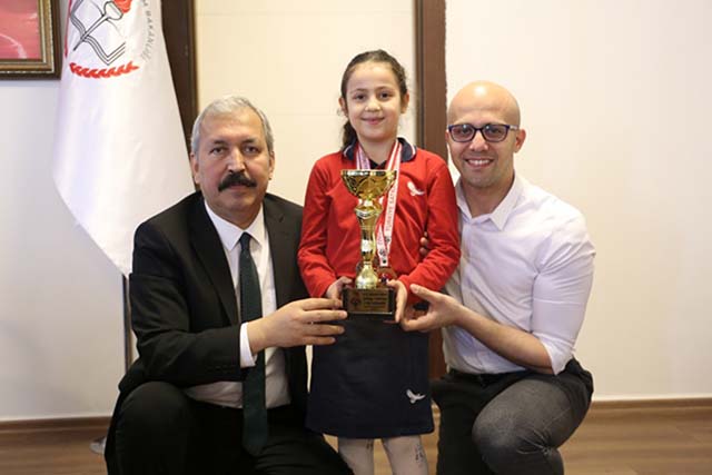 Ziyarette; Okul Müdürü, öğretmenler ve Türkiye Satranç Şampiyonası’nda Milli Takım’a seçilen öğrenci Zeynep İmge Okuyan ile sohbet eden İl Müdürü Kemal Karahan, Türkiye Satranç Şampiyonası’nda 8 yaş grubunda 4. olarak 17 Nisan 2019 tarihinde Antalya’da yapılacak Dünya Satranç Şampiyonası’nda Milli Sporcu olarak ülkemizi temsil edecek olan öğrenciyi, öğretmenlerini, okul müdürünü ve ailesini tebrik ederek başarı diledi.-Selvi Günay-