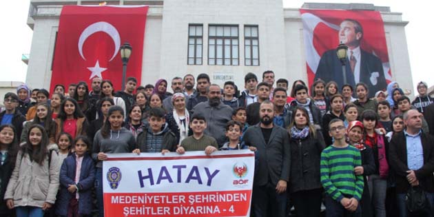 Hatay İl Emniyet Müdürlüğü, “Polis-Gençlik” kaynaşmasını sağlama amacına dönük olarak geçtiğimiz hafta sonunda Çanakkale’ye bir öğrenci grubunu gönderdi. Organizasyonun, “Medeniyetler Şehrinden Şehitler Diyarına” Projesi kapsamında bu yıl 4.kez gerçekleştirildiği ve lise öğrencisi grubun Çanakkale’ye geziye gönderildiği bildirildi. Geçtiğimiz Cuma günü köprübaşındaki Büyükşehir Belediyesi binası önünden hareketle 10 polis memuru eşliğinde Çanakkale’ye giden 81 lise öğrencisinin bugün Hatay’a döneceği öğrenildi.
