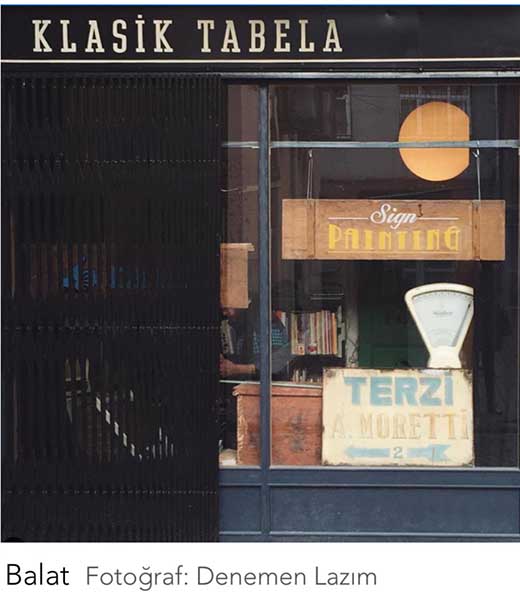 İstanbul’un tarihi semtlerinden biri olan Balat’ın kafe ve mağazalarının tabelaları dikkatimi çekti. Ve ardından araştırmaya başladım. Belli ki, bir kişinin daha canını sıkmıştı bu tabela mevzusu. Bir kaç kişiye sorduktan sonra, hakikaten de, yine Balat’ta bulunan ‘Klasik Tabela’ diye bir dükkânın sahibi olan grafik tasarımcının işleri olduğunu öğrendim. Geçmişteki tabelalardan ilhamını alan bu tabelalar, bulunduğu bölgenin dokusu ile uyumlu olup, son derece özenli ve mütevazi işlerdi.