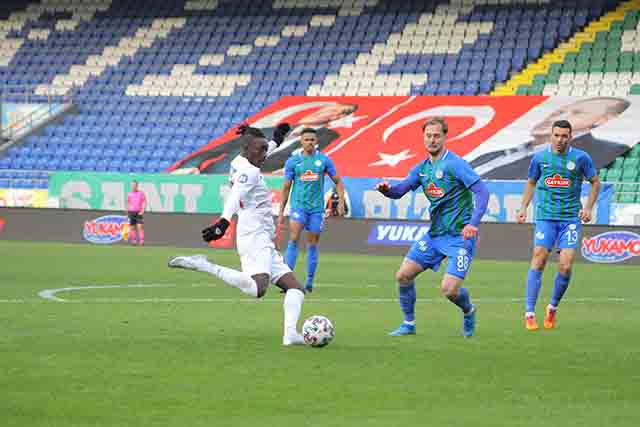 30.dakikada, ev sahibi ekibin atağı tehlikeli geldi. Soldan kullanılan frikikle oluşan karambolde, Samudio kafayı attı, top kaleci Munir’de kaldı. 38.dakikada Rize, İsmail ile gol kazandı, yardımcı ofsaytı işaret etti, gol iptal edildi. 44.dakikada, Fernando sağ çaprazdan kaleyi yokladı top avuta çıktı. Devre, golsüz sona erdi.