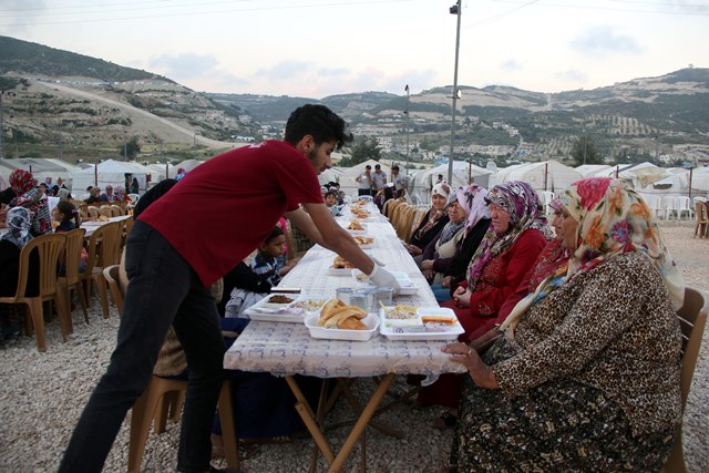Yayladağı Kaymakamlığı ve Anda Kardeşe Vefa Derneğinde Hatay sınırındaki Güveççi çadır kentinde iftar verildi. Yaklaşık 1,5 yıl önce Bayırbucak Türkmen bölgesinden gelen ailelerin kaldığı kampın girişindeki alanda düzenlenen etkinlik, Kur’an-ı Kerim tilavetiyle başladı. Programa katılan Kaymakam Ömer Faruk Yüce, Türkmen ailelerle bir araya gelerek sorunlarını dinledi.