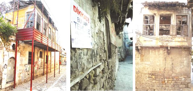Söylenene eklenen bir diğer gerçeğimiz ise, her gün artık daha fazla gördüğümüz başka bir şey… ‘Bu yapı tehlike arz etmektedir’ diyen başka ‘isimlikler’… Yerel idareler bünyesinde yer alan Koruma Uygulama ve Denetim Büroları (KUDEB) tarafından asıldığı düşünülen bu ‘dikkat’ tabelaları yerine ‘neden çözüm üretilmediği’ ise bu kentin belki de asıl tartışması gereken bir diğer konu başlığı. Peki, tartışır mıyız? Yoksa, Ataman Demir isminin yanı başına asfalt döken zihniyete ve artan bu ‘dikkat’ tabelalarıma ses çıkarmadığımız gibi, sessiz mi kalırız?