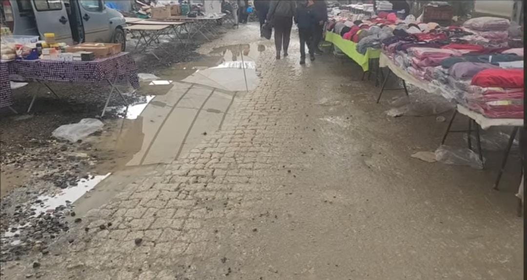 Hatay’ın Defne ilçesinde Hanna Deresi yanında kurulan (Salı) Sosyete Semt Pazarı, çamur ve su birikintileri nedeniyle hem pazarcıları hem de alışverişe gelen vatandaşları zor durumda bırakıyor. Salı günleri kurulan ve dar gelirli vatandaşların yoğun olarak tercih ettiği pazar alanının Defne Belediyesi sorumluluğunda olmasına rağmen uzun süredir bakımsız olduğu belirtildi.