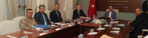 Cumartesi günü Hatay’a gelen İçişleri Bakan Yardımcısı İsmail Çataklı’ya Valilik bahçesinde bir karşılama yapıldı. Bakan Yardımcısı Çataklı’yı; Vali Erdal Ata, Vali Yardımcıları Aydın Tetikoğlu, Nursal Çakıroğlu, Bilal Ölmez, Mahmut Hersanlıoğlu, Erol Özkan, Meral Batı Demirbaş, Hüseyin Demirbaş, İl Jandarma Komutan Vekili Albay Yılmaz Kırgel, İl Emniyet Müdürü Kamil Karabörk ile Valilik birim müdürleri karşılamada bulundu. Valilik Şeref Defteri’ni imzalayan Bakan Yardımcısı Çataklı, beraberindeki heyet ile birlikte Vali Ata’nın makamına geçti. Bakan Yardımcısı Çataklı, daha sonra alt kattaki salonda, Devletimizin Afrin’de Hatay Valiliği koordinesinde yaptığı güvenlik, altyapı, eğitim, sağlık ve insani yardım faaliyetlerine yönelik olarak sürdürülen çalışmalar hakkında düzenlenen bir toplantıya Başkanlık etti. -Cemil YIldız-