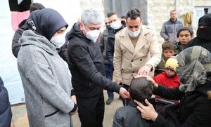 Bakan Yardımcısı Çataklı, Vali Rahmi Doğan ve Eşi Gülüzar Doğan, İdlib’de gerçekleştirdikleri incelemelerinde, savaş mağduru çocuklarla yakından ilgilendiler. Vali Rahmi Doğan, bu dramdan ve zorlu yaşam şartlarından en çok etkilenenlerin çocuklar olduğunu vurguladı. -Cemil Yıldız-