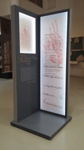 Tavanlardan zemine yaşanan sıkıntının ötesine geçelim ve biraz ilerleyelim! Çok fark edilmese de, Müze’deki sergi salonları bitip de çıkış alanına yaklaştığınızda, sizi bazı maketler ve Padişah fermanları karşılar. Bu alanda yaşanan sıkıntılardan biri de, sergilenen fermanların Türkçe hallerinde yaşanan heceleme hataları! Aslına bakarsanız, Gazete çıkartan bizlerin de en zorlandığı