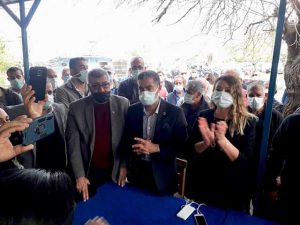 Bakanlık yetkilileri, kahvehanede, içeride gizli bir şekilde tutanağı tutmaya çalıştılar. En son noktada, zorla içeri girebildik, tutanağı gördük. Toplantının, halkın bilgilenmek istemediği için yapılmadığını tutanak altına aldılar, şerh düşmemize izin vermediler. ‘Kaymakamlıkça yapılan yasak kararına rağmen, bu toplantının muaf tutulduğuna ilişkin şerhimiz’ tutanağa geçirilmedi. Bu esnada, kısa süreli bir gerginlik yaşandı, dört gözaltı oldu, biri serbest bırakıldı, diğer üç arkadaş şu anda ifadelerini vermek üzere götürüldüler.