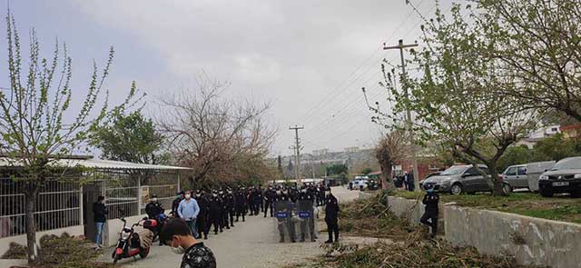 Saat 9:30’da bölgeye gittiğimde, 1 saat boyunca polis engeliyle karşılaştım. Ardından, Çevre Koruma Derneği’nden sadece 2 kişi girebilir talimatı ile toplantı alanına girebildim. Mahalle sakinleri, maden sahalarını istemediklerini, bu durumun toprağa ve suya zarar verdiğini, zeytin bahçelerinin ve tarım topraklarının kullanılamaz hale geldiğini yüksek sesle ifade ettiler.