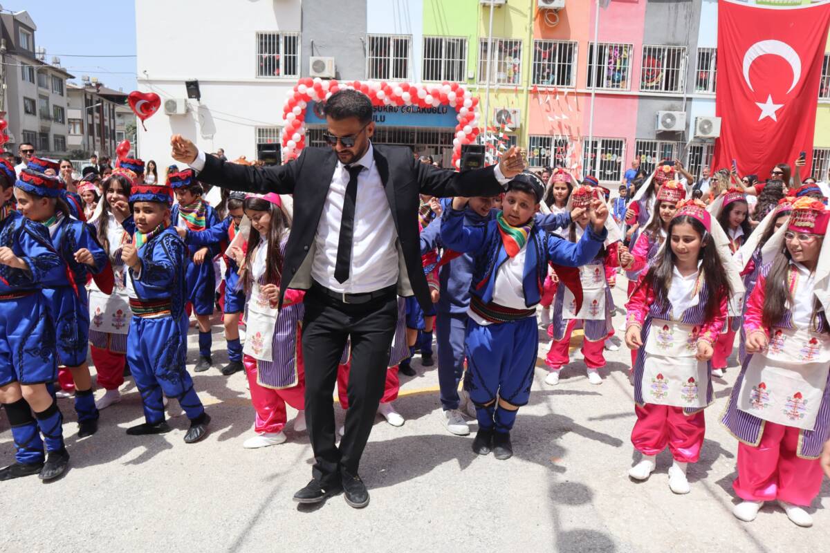 Ulu Önder Mustafa Kemal Atatürk’ün çocuklara armağan ettiği 23 Nisan Ulusal Egemenlik ve Çocuk Bayramı, Cemil Şükrü Çolakoğlu İlkokulu’nda coşku, neşe ve gurur dolu anlarla kutlandı. Okulun bahçesi kırmızı beyaz bayraklarla donatıldı, minik yürekler ise günlerdir hazırlandıkları gösterileri sergilemenin heyecanını yaşadı.