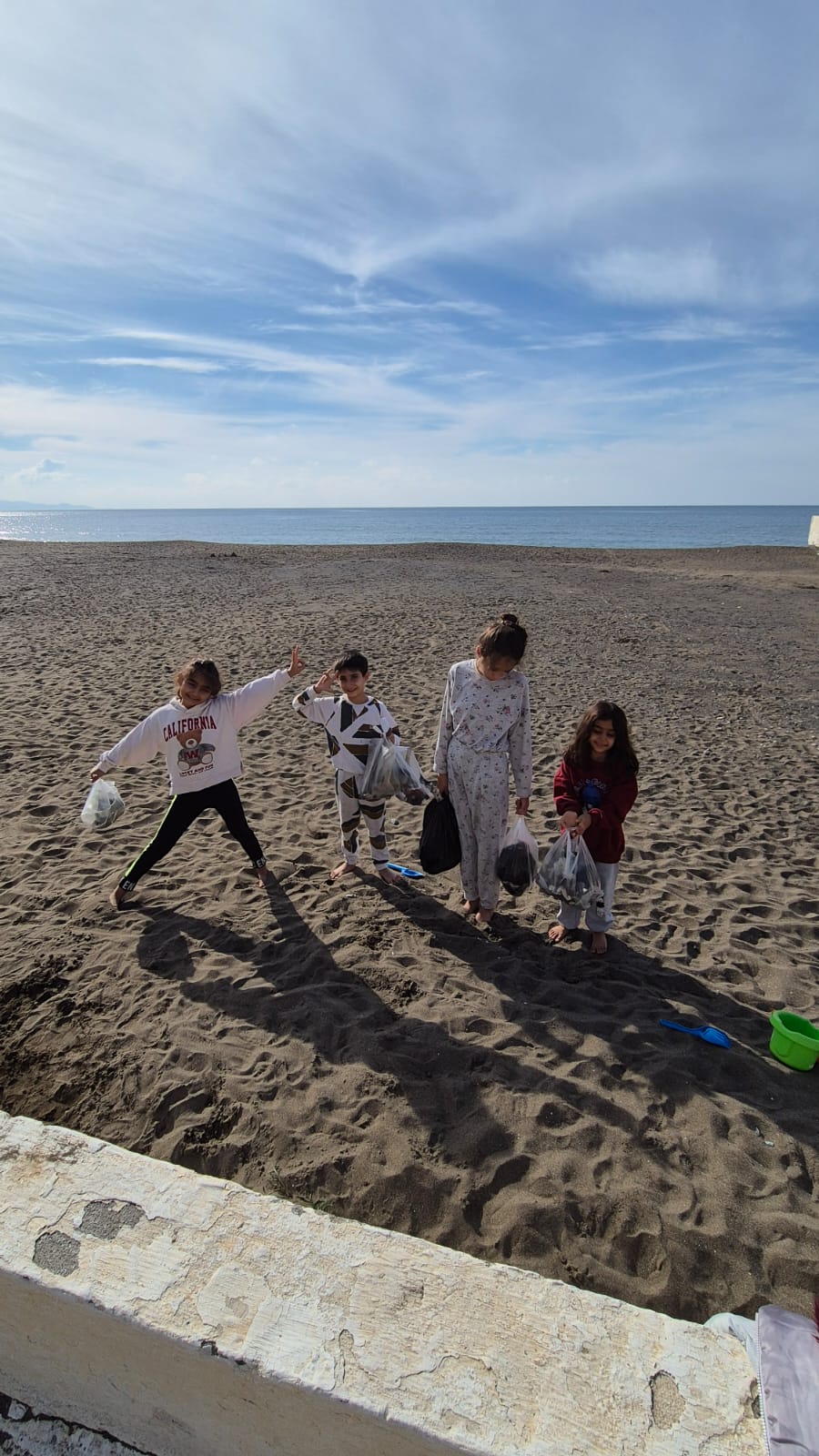 Minik çevreciler, sahildeki çöpleri tek tek toplayarak poşetlere doldurdu, ardından bidonlara atarak alanı temizledi. Bu davranışlarıyla çevre bilincinin yaşla değil, duyarlılıkla ilgili olduğunu bir kez daha gösterdiler.