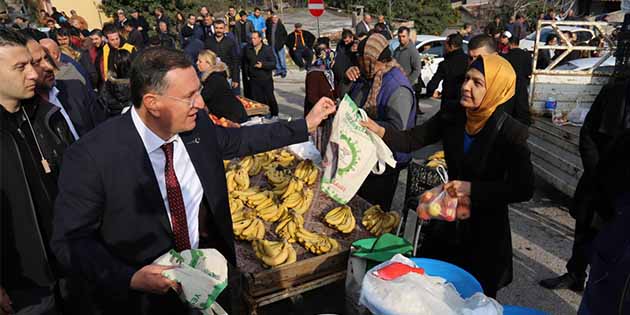 Hatay Büyükşehir Belediyesi (BŞB), çevreyi koruma adına, semt pazarından alışveriş yapanlara bez çanta ve poşet dağıtıyor. İlk uygulama, dün Bağrıyanık-Şirince pazarında yaşandı. Pazarda alışveriş yapan hemşehrileriyle bir araya gelen ve onlara Hatay Büyükşehir Belediyesi’nin bez çantalarını hediye eden Başkan Savaş, pazar esnafı ile de sohbet ederek hayırlı kazanç temennisinde bulundu. Daha yeşil bir Hatay ve sağlıklı nesiller için çalışan Lütfü Savaş’a teşekkürlerini ileten vatandaşlar, duyarlı belediyecilik örneği sergileyen Büyükşehir Belediyesi’ne teşekkür etti. -Cemil Yıldız-