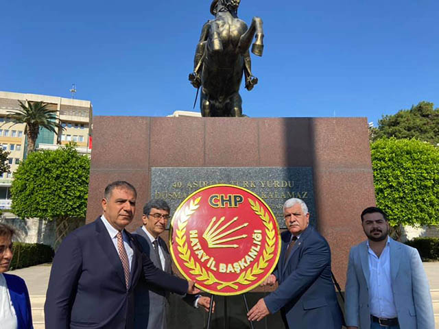 Dün, Antakya Atatürk Anıtı’ndaki törene; Milletvekilleri Mehmet Güzelmmansur ve İsmet Tokdemir, İl Başkanı Hasan Ramiz Parlar, Antakya ve Defne İlçe Başkanları Ümit Kutlu ile Akın Parlakyıldız, Kadınlar Kolu İl Başkanı Filiz Haksöz, Gençlik Kolları Başkanı Barış Birim ile diğer Partililer katıldı.-Cemil Yıldız-