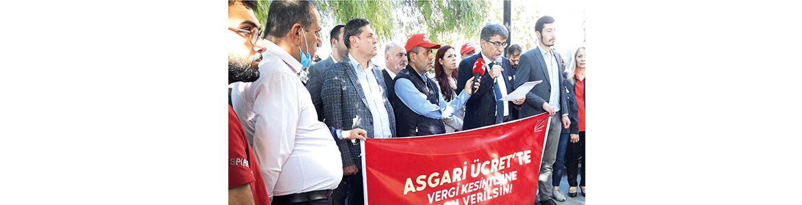 CHP, asgari ücretliden vergi kesintisi yapılmamasını istedi. CHP İl Başkanı Hasan Ramiz Parlar ile bir grup Partili, dün Antakya köprübaşında basın açıklamasında bulundu. Açıklamasında, asgari ücretin yetersiz olduğunu, hal böyle iken asgari ücretten kişi başı 752 TL kesildiğini hatırlatan CHP İl Başkanı Hasan Ramiz Parlar, 2022’de asgari üretin yeniden belirleneceğini, hiç olmazsa o tarihe kadarki 3 aylık sürede asgari ücretten vergi alınmayarak, bunun, işçilere verilmesini teklif ettiklerini bildirdi -Cemil Yıldız-