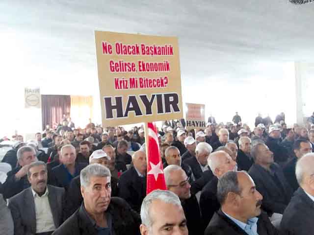 Bu referandum, bu ‘hayır’lı referandum, Türkiye’deki bu sorunların sonu, aydınlık günlerin mutlaka başlangıcı olacak. İşsizliğe ‘hayır’ dediğimiz, yoksulluğa yokluğa ‘hayır’ dediğimiz, kutuplaşmaya ‘hayır’ dediğimiz, düşmanlaştırmaya ‘hayır’ dediğimiz, teröre ‘hayır’ dediğimiz çok güzel ve aydınlık bir Türkiye’yi inşa edeceğiz.”
