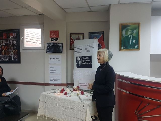 Uğur Mumcu için oluşturulan köşeye çiçeklerin konulması ve saygı duruşu ardından yapılan konuşmalarda, Uğur Mumcu’nun; yolsuzlukların, hırsızlıkların, yanlışların üzerine giden cesur bir kalem olduğuna dikkat çekildi. İlçe Başkanı Parlar, İHD Başkanı Can ile Antakya İlçe Kadınlar Kolu Başkanı Kanuncu Seçkin’in konuşma yaptığı CHP’deki anma etkinliğinde, 25 yıl önce karanlık eller tarafından alçakça katledilen Uğur Mumcu’nun, bir ölüm yıldönümünde daha her geçen gün artan bir özlemle, saygıyla anıldığına vurgu yapıldı ve şöyle devam edildi: