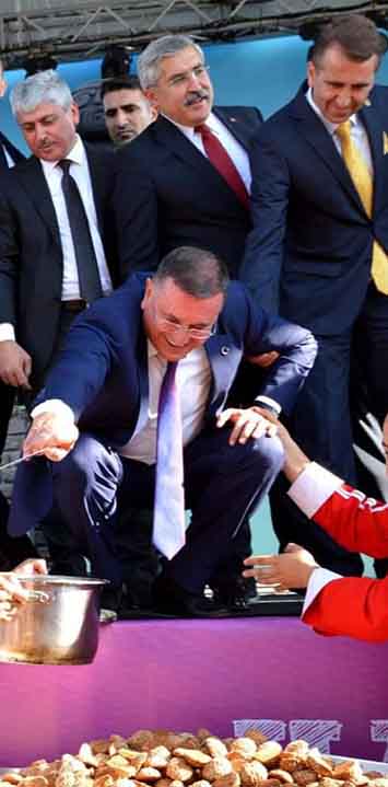 Habere konu fotoğraflar, Perşembe günü İstanbul Maltepe’deki Hatay Tanıtım Günleri açılışında çekildi. Organizasyonun destekçilerinden, Hatay BŞB Başkanı Lütfü Savaş; Vali, Milletvekilleri ve diğer protokol üyeleri önünde peynirli künefe tepsisine şire dökmek isterken, kepçeyi aldı, dizlerini büktü, öne eğildi. Bu sırada dengesini kaybetmek ve düşmek üzereyken de, imdadına Partili Milletvekili arkadaşı Serkan Topal yetişti ve kollarına girerek başkanına destek oldu.