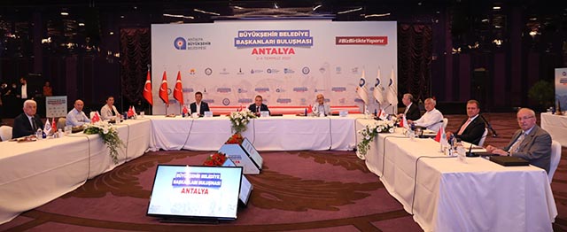 Hatay Büyükşehir Belediye Başkanı Lütfü Savaş’ın, yurt dışında olması nedeniyle toplantıya katılamadığı CHP’li Büyükşehir Belediye Başkanları toplantısı, Antalya’da yapıldı. İstanbul Büyükşehir Belediye Başkanı Ekrem İmamoğlu, Ankara Büyükşehir Belediye Başkanı Mansur Yavaş, İzmir Büyükşehir Belediye Başkanı Tunç Soyer, Mersin Büyükşehir Belediye Başkanı Vahap Seçer, Eskişehir Büyükşehir Belediye Başkanı Yılmaz Büyükerşen, Muğla Büyükşehir Belediye Başkanı Osman Gürün, Aydın Büyükşehir Belediye Başkanı Özlem Çerçioğlu, Tekirdağ Büyükşehir Belediye Başkanı Kadir Albayrak ve Adana Büyükşehir Belediye Başkanı Zeydan Karalar katıldığı toplantıda, ortak bildiri, Antalya Büyükşehir Belediye Başkanı Muhittin Böcek tarafından kamuoyuyla paylaşıldı.