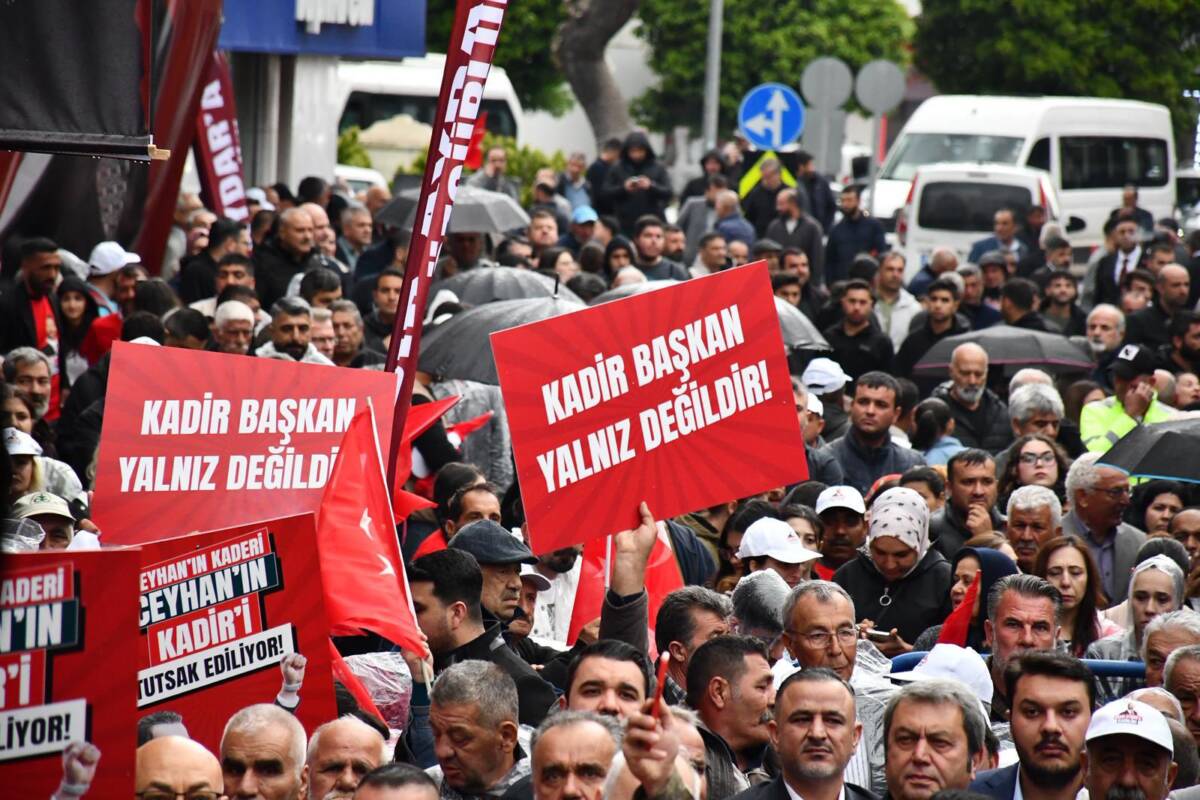 Adana’nın Ceyhan ilçesinde bir araya gelen vatandaşlar ve partililer, meydanda “Hak, hukuk, adalet” sloganları atarak Kadir Aydar’a destek verdi. Katılımcılar, Aydar ile birlikte tutuklu bulunan isimlerin de serbest bırakılması çağrısında bulundu.