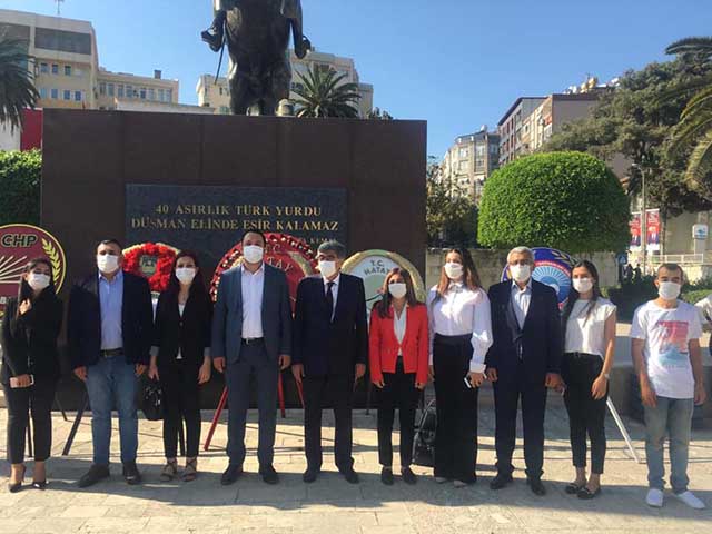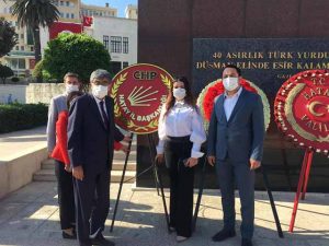 CHP Milletvekilleri, İl ve İlçe Başkanları, Gençlik ve Kadın Kolları Başkanları ile diğer yöneticiler, Cumhuriyet Alanı’ndaki Atatürk Anıtı’na, protokol töreni dışında, ayrı bir şekilde çelenk sundu ve saygı duruşunda bulundu. CHP’liler, İl Başkanı H.Ramiz Parlar başkanlığında, Antakya ve Defne İlçe Başkanları ile Kadın Kolu İl Başkanı ve Partililer, Anıt’a çelenk sunduktan sonra saygı duruşunda bulundu. -Cemil Yıldız-