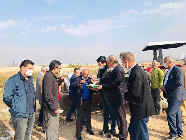 Tarlaya buğday ekimi gerçekleştirilirken, ekim sırasında CHP İlçe Başkanı, Gençlik Kolu Başkanı ve diğer Partililer tarlaya gitti, ekim yapan çiftçilerle bir araya geldi.