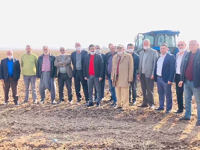 İlçe Başkanı, Yöneticiler, kiraladıkları tarlada buğday ekimine katıldı.