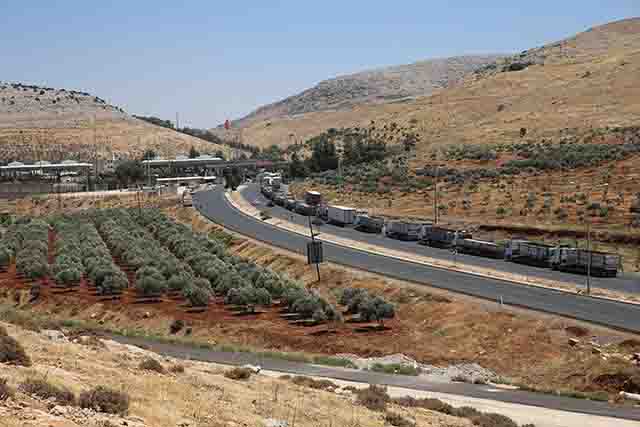 Reyhanlı ilçesindeki Cilvegözü Sınır Kapısı’nda, Suriye’ye gönderilen insani yardım ve çeşitli eşya taşıyan tırlar yoğunluğa neden oldu. Türkiye’nin farklı illerinden gelen ve Suriye’ye gönderilen insani yardım malzemeleri ile çeşitli eşya taşıyan tırlar, Cilvegözü Sınır Kapısı’nda yaklaşık 3 kilometrelik kuyruk oluşturdu. Sınır kapısından tırların çıkışları kontrollü yapılıyor. -Mehmet ÖZGÜN-