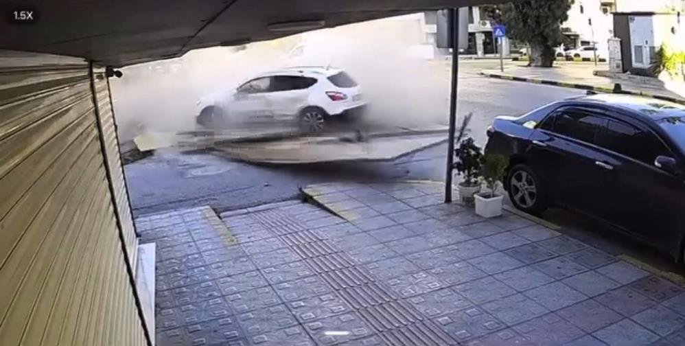 Çevredeki bir iş yerinin güvenlik kamerasına yansıyan görüntülerde, araçların çarpışma anı ve cipin bariyerleri yıkması net şekilde görülüyor. Kazada cip sürücüsü hafif yaralanırken, her iki araçta ve çevrede maddi hasar oluştu.